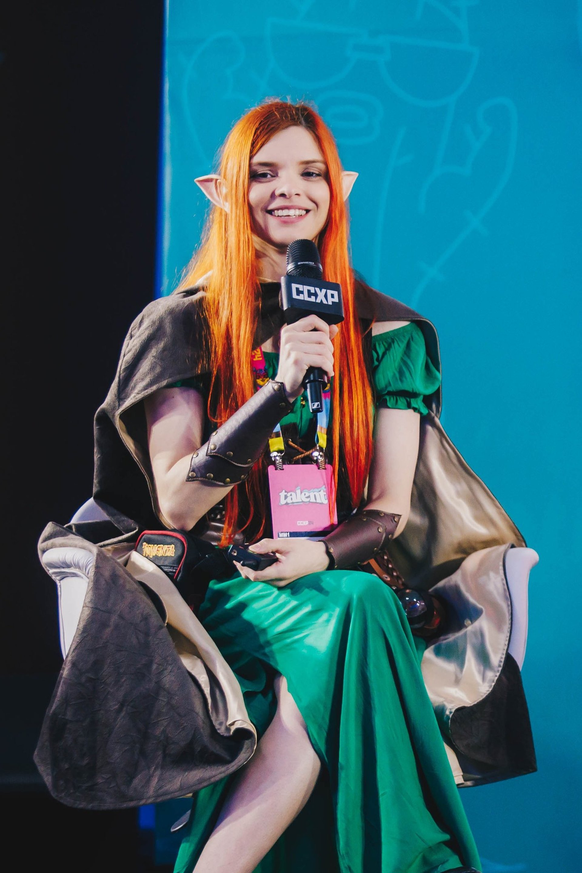 Nas quintas-feiras, interpreto Aylarianna Purpúrea, a fada mais “honesta” de Arton, em Fim dos Tempos, mesa de RPG canônica do universo Tormenta, transmitida ao vivo no Twitch da Jambô Editora.